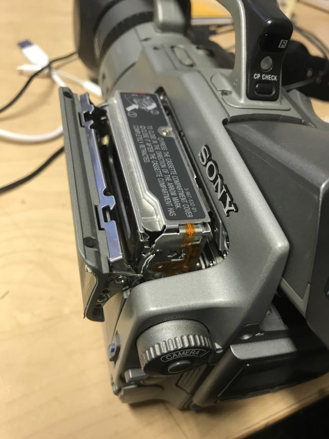 I just inserted a mini dv tape and it "half" closed (see picture), now it doesn't open anymore but also doesn't want to close. The ejecting symbol is showing on the screen of the camera, but it doesn't do anything (not even make a single sound). Before I inserted this tape, it seemed to work just fine but I have never inserted a tape in this camera before. Does anyone know a possible way to fix this? I already tried taking the AC battery out, switching the "camera" mode on to reset it, and putting the battery back in. But it didn't work.