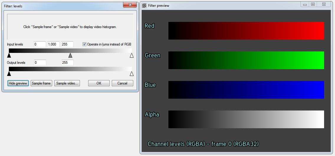 6. If you want something with an interactive preview try VirtualDub2 and its Levels filter. You can adjust the black level, white level, and gamma all in one filter with real time feedback.