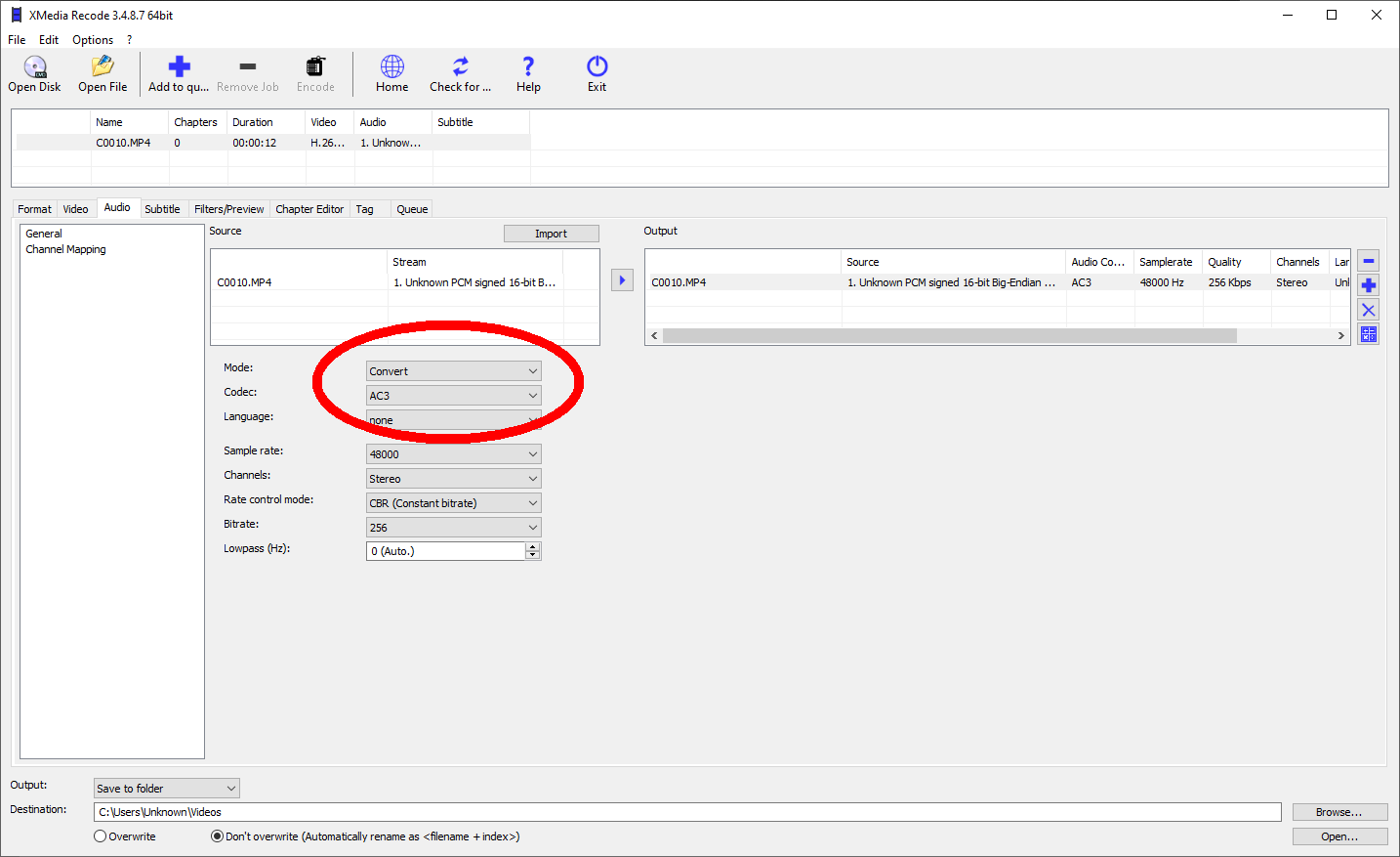 So I tried XMedia Recode.
