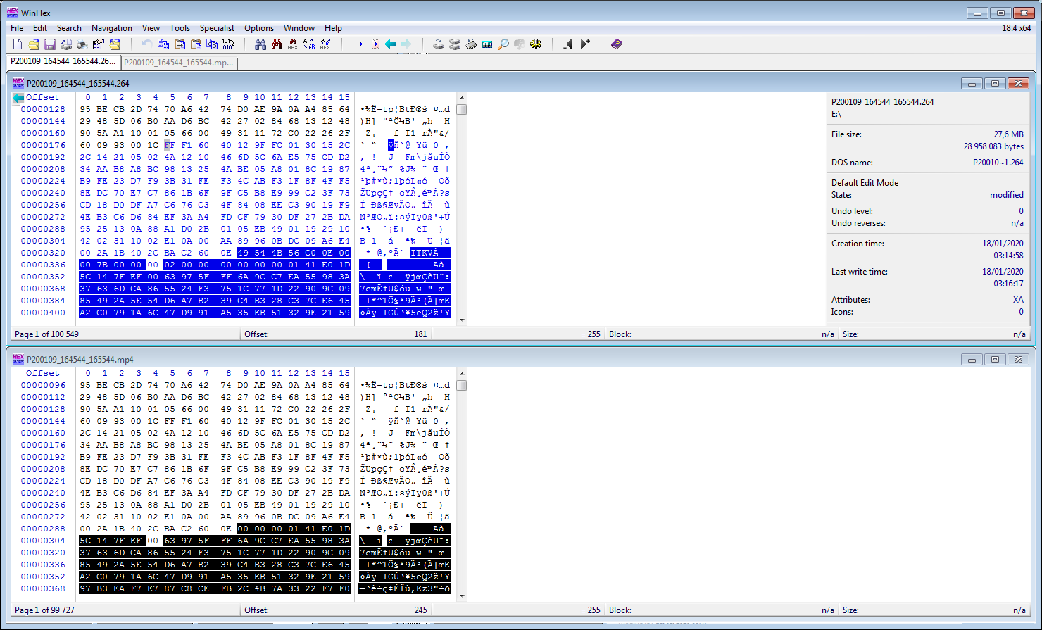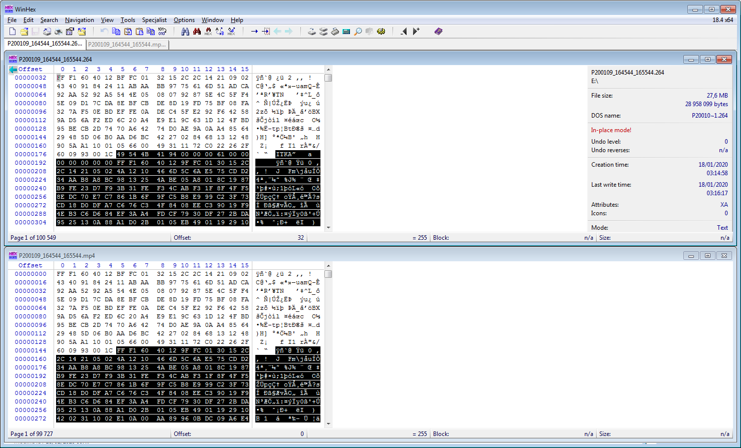 - when comparing P200109_164544_165544.mp4 with P200109_164544_165544.264, it appears that the 32 first bytes are stripped on the .mp4 ;