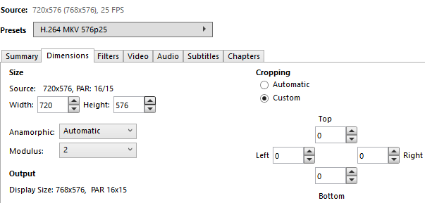 I am encoding a few of my DVDs to H.264 (x264) and want keep the original/correct video width/height/aspect ratio using HandBrake. Have I selected the correct settings as per the images?