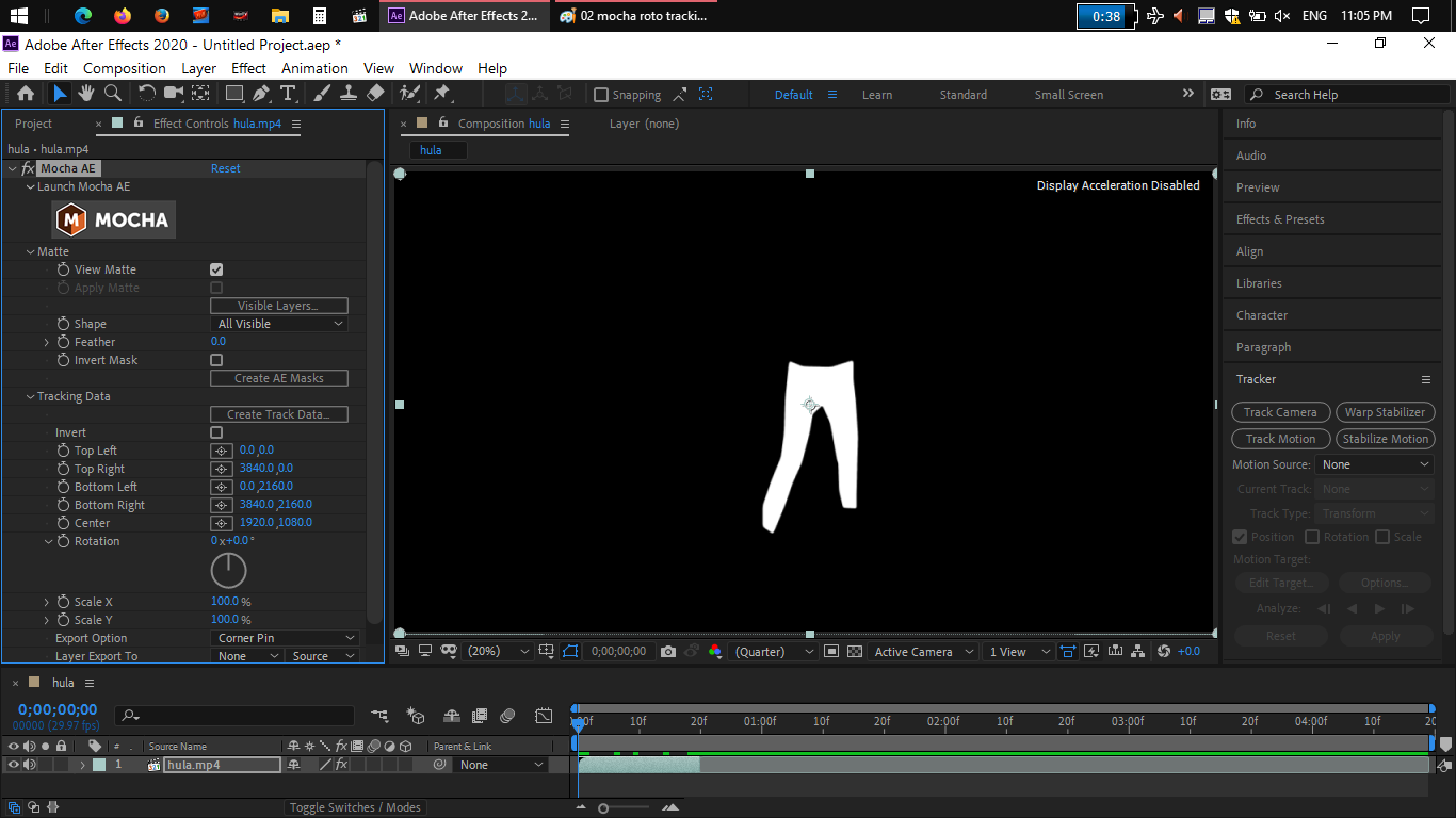 open the layer for the video clip, add mocha, edit the mask in mocha, close and save to go back to AE.