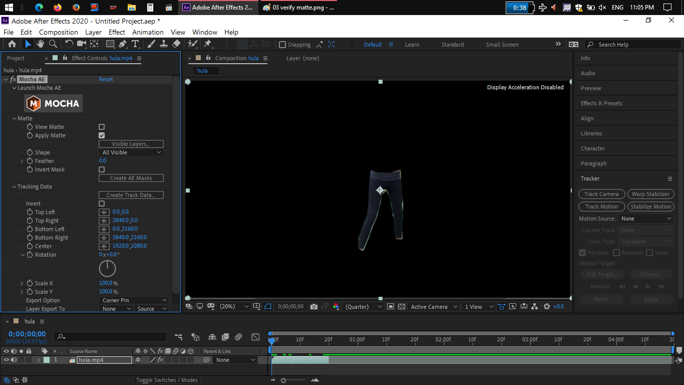 Back in After Effects, you can click the VIEW MATTE option to see if you've got a good matte from Mocha. yes.