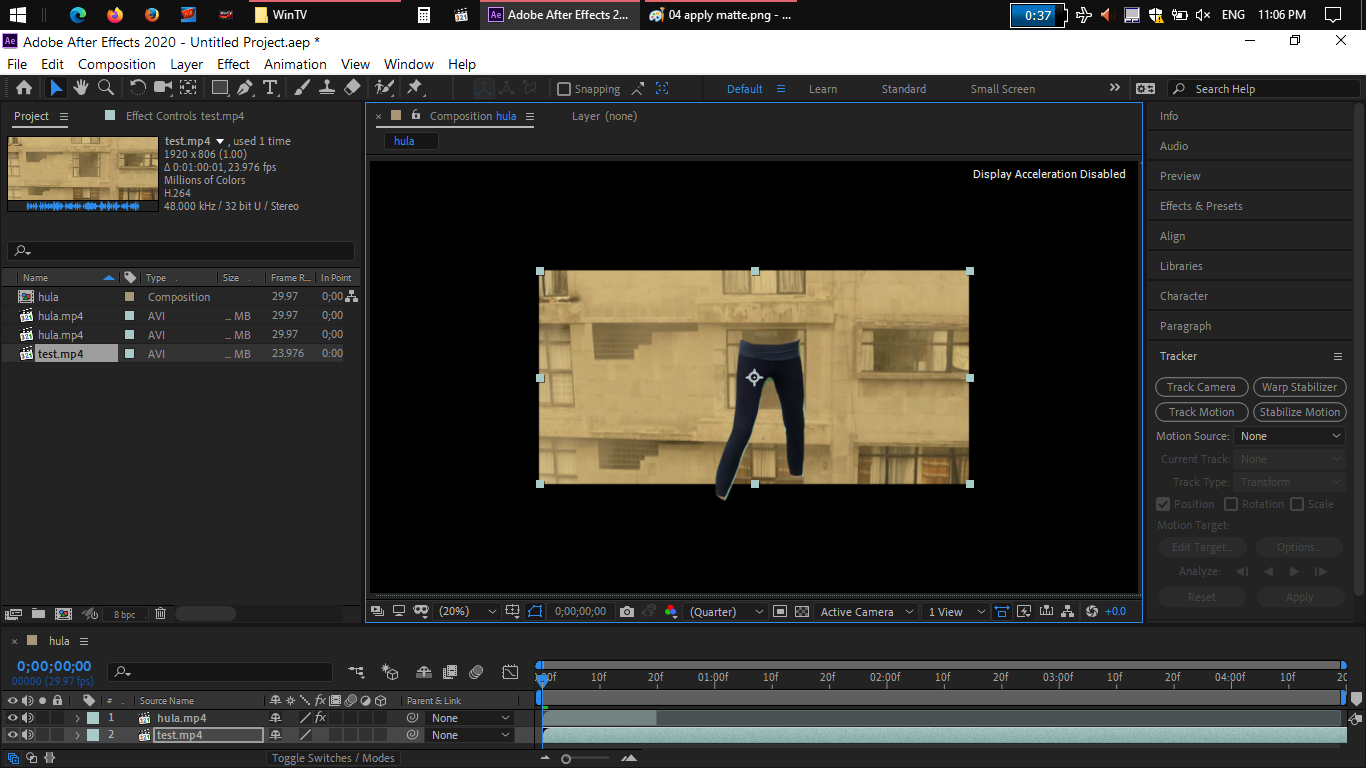 3. Stick both original clip and background image in the AE composition.