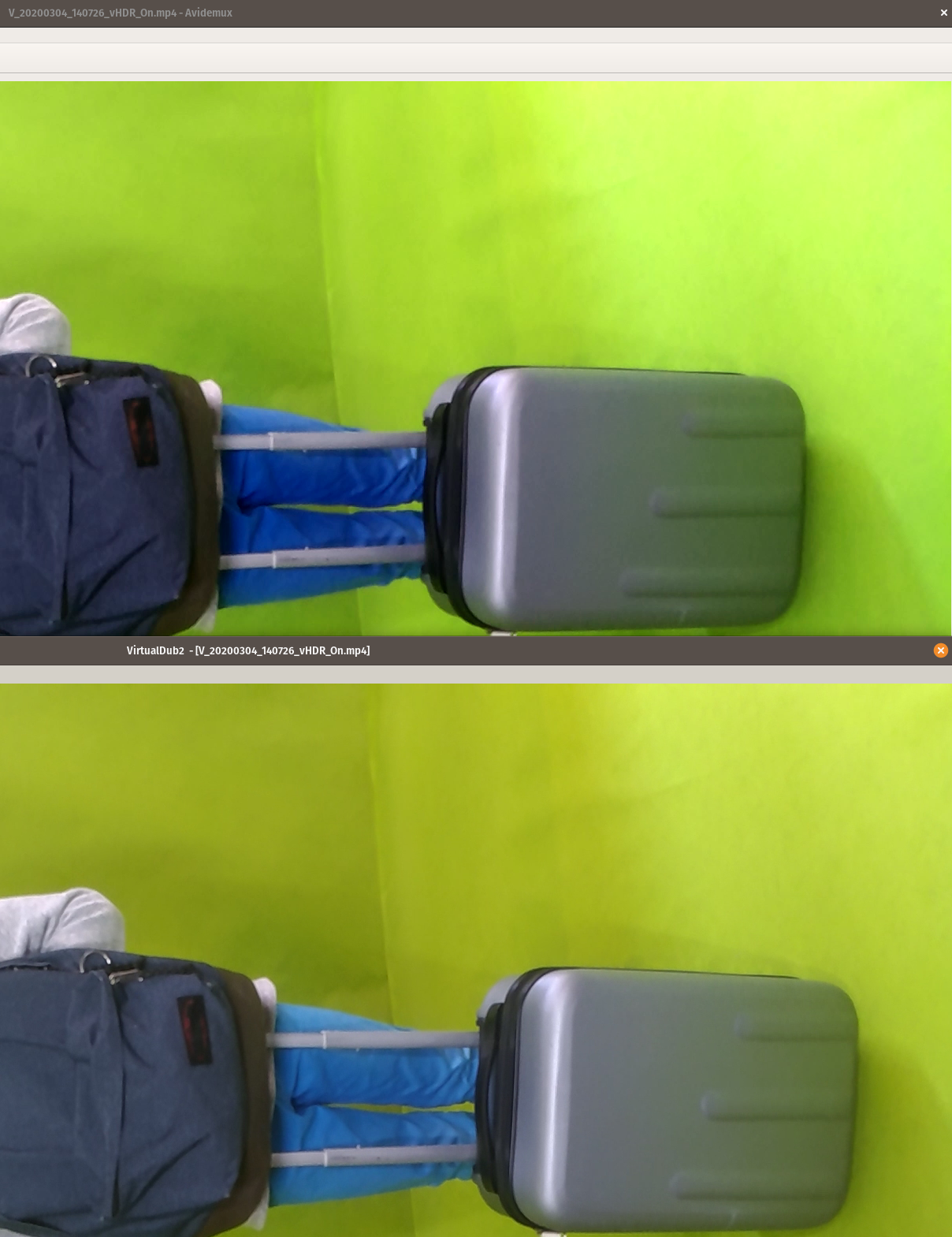 PS. I was checking a SD video. If Avidemux always uses the same colorimetry for YUV sources regardless of resolution, which would mean HD YUV video is converted to RGB using the same formula as for SD, the colors may still look a little different in the preview. I don't know that's what happens as I haven't checked, but it's a small difference anyway. Nothing like the difference in the colors without opengl support enabled, and nothing to worry about.