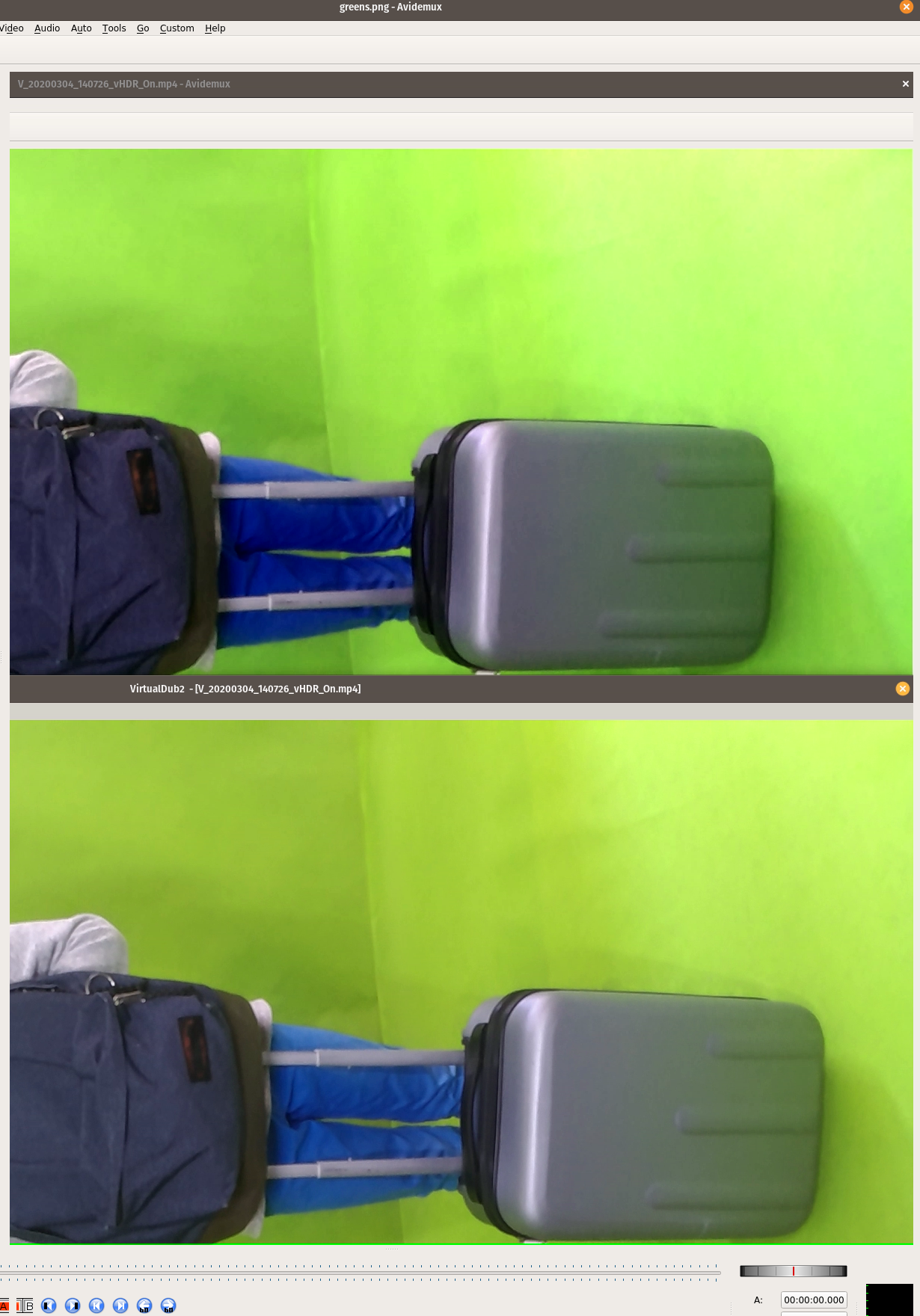 The original video plays a different green with VirtualDub2 or VLC, it's less yellowish in Avidemux (YUV instead of RGB?).