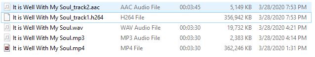 So, then I took the video file and muxed it with an mp3 of the same audio file. The original MP4, the extracted audio mp3, and the extracted audio wav are all 3:30.