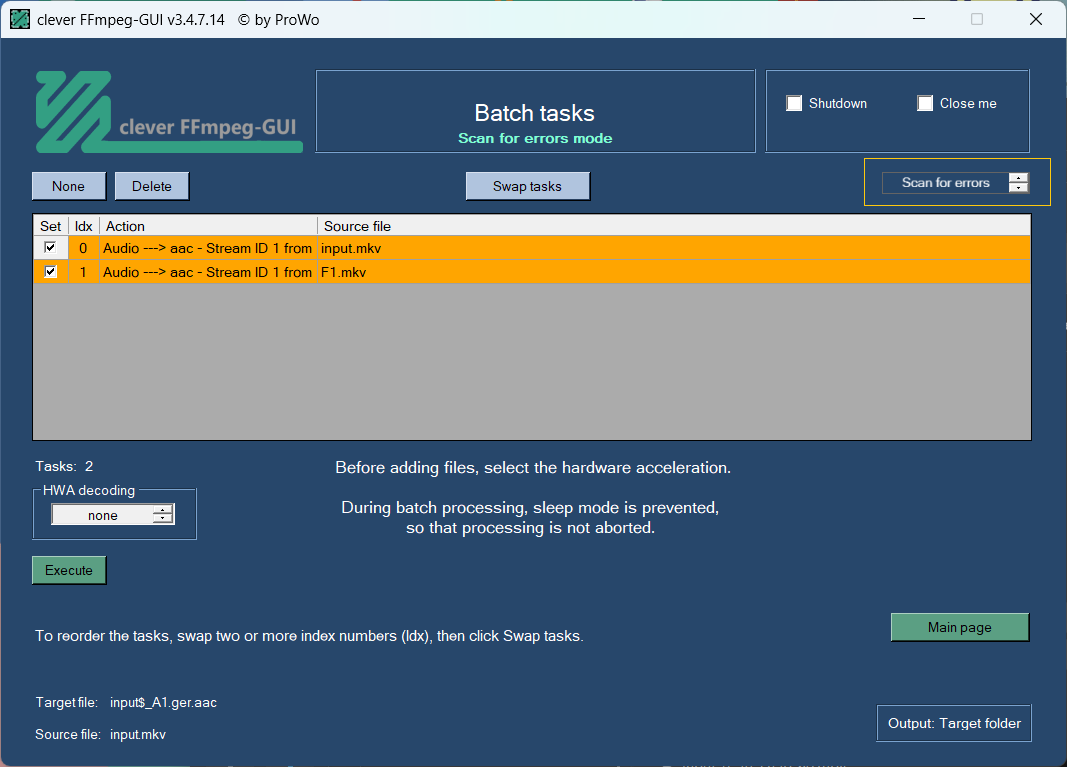 What if you could switch between "Batch tasks" including replication of batch 0, and "Scan for errors" mode which opens the HWA-decoding option but without replication of batch 0.