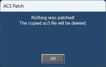 I muxed a buggy file with show the "AC3 5.1 patch" for audio stream 1. Nothing was patched, and when you click OK at the dialog, the Audio encoding page is closing. Is that intentional?