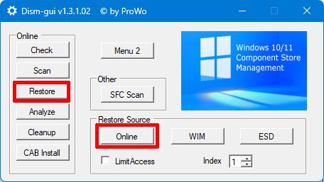2) If no more errors are found, click on Restore and then Online.