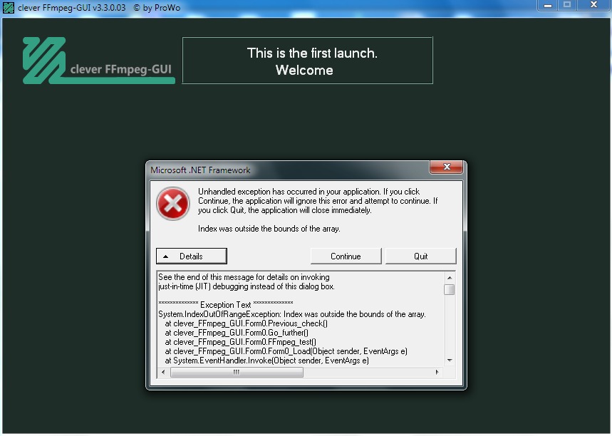 When I attempted to use the settings you posted above, I was given a "Index was outside the array" error when restarting Clever FFmpeg-GUI
