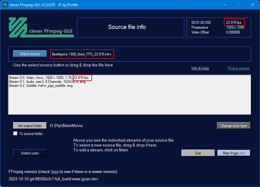 Also the fix framerate file didn't go to my target output folder C:\Clever ffmpeg GUI it went to the Clever FFmpeg-GUI program folder using Beta v3.3.0.04.Last edited by oniiz86; 22nd Oct 2024 at 11:15.