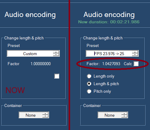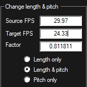 When the source has 30 or 60 fps, the lenght & pitch preset show 23,976 -> 25/24