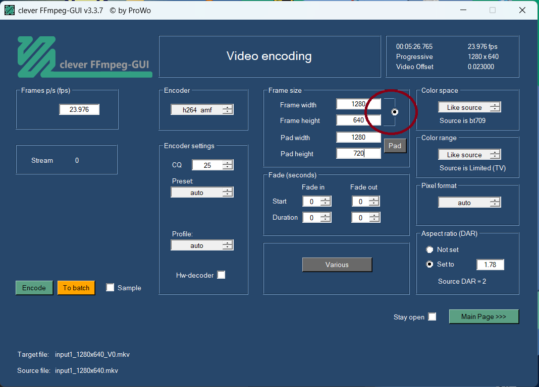 I was trying to change DAR to vp9 video stream using DAR feature in Various but only 'container' allowed me to change there.