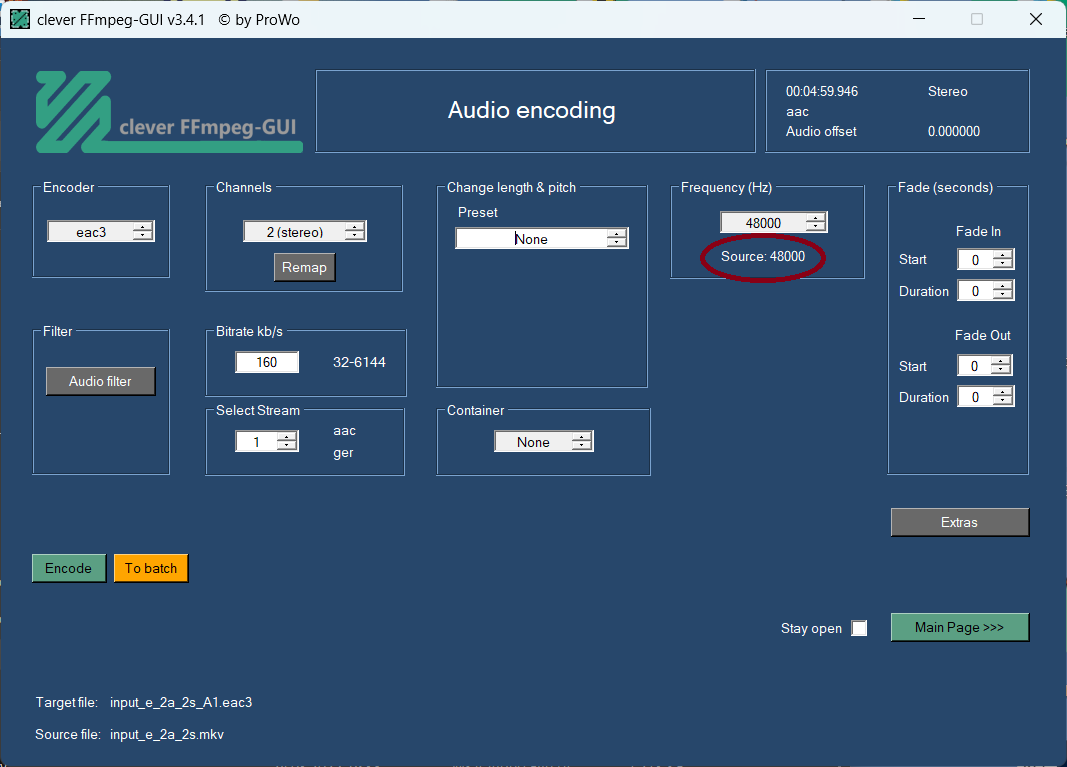 As I see, the frequency of the source on the audio encoding page always corresponds to the value of the first audio stream and not to the frequency of other included audio streams. -
