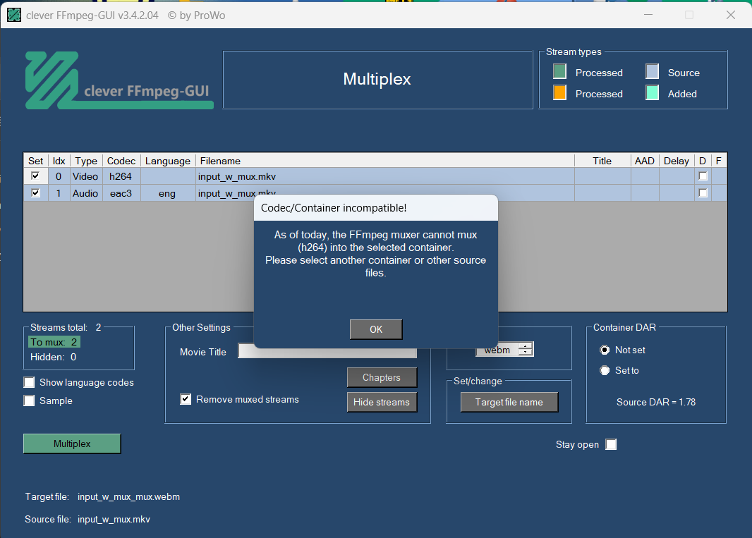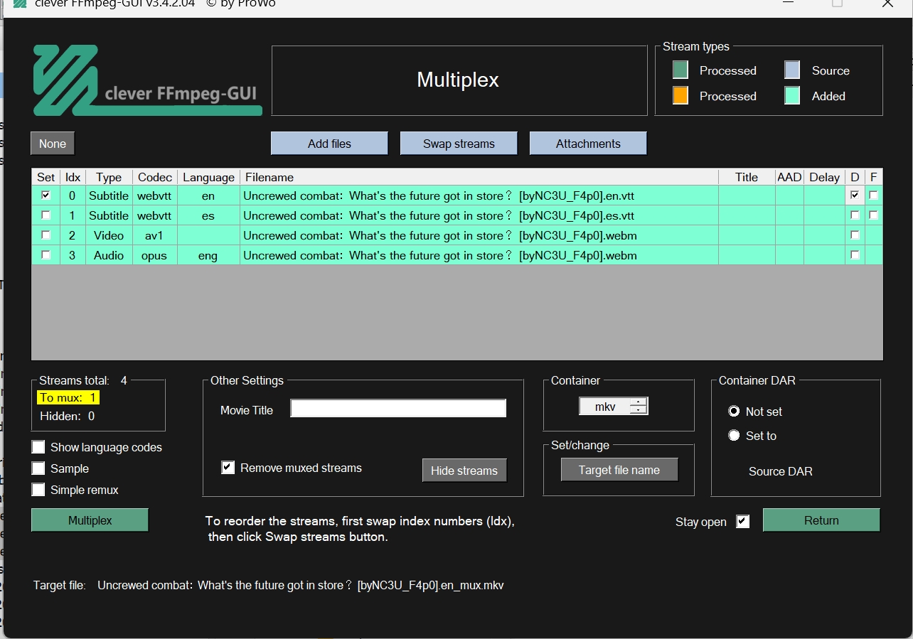 - when exiting cleverFFmpeg, there's no prompt to remove the streams either and they all stay in the folder, the prompt only appears upon the next cleverFFmpeg start - very confusing.