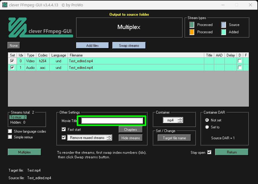 I admit that the Multiplex page confuses me, as I don't know how it works. So for now I use MKVToolNix for multiplexing.