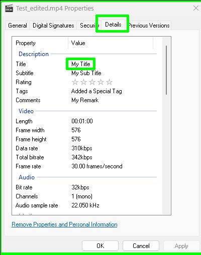[Edit #1] if I Mux the file with clever and add a title , the title shows, and is read back.