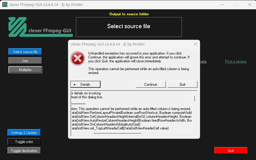 System.InvalidOperationException: This operation cannot be performed while an auto-filled column is being resized.