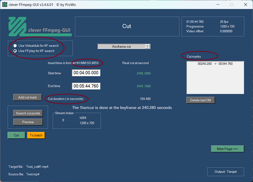 - Replacing "KF" with "frame" as you use the search also for b and p frames in "Frame accurate cut", and not only for i frames?
