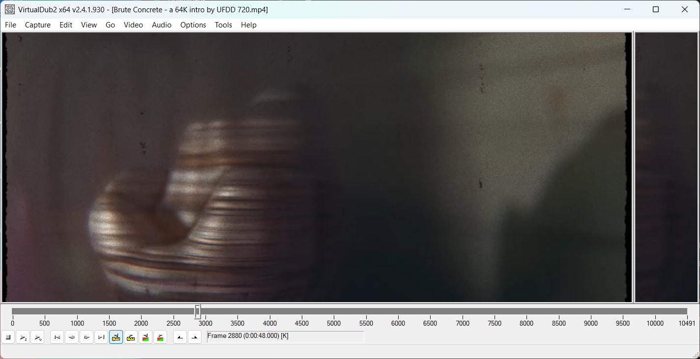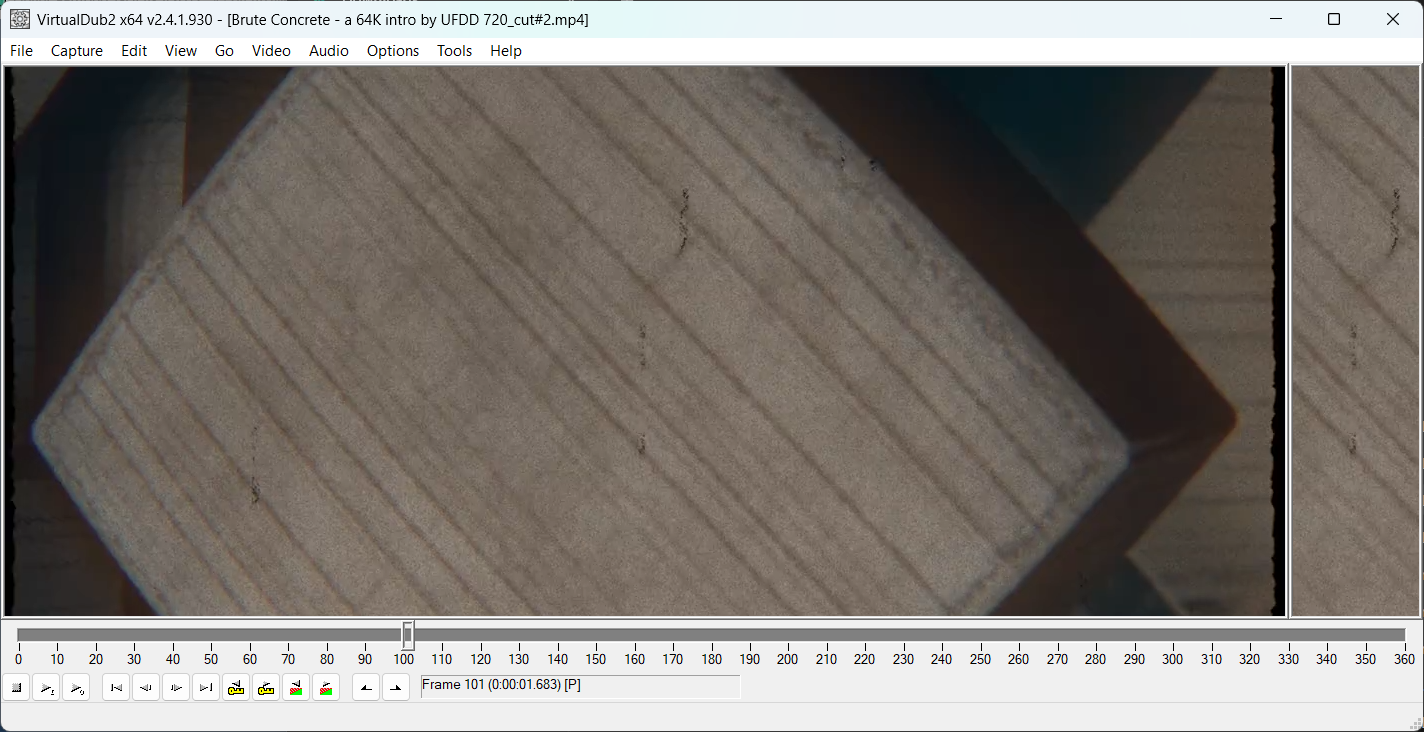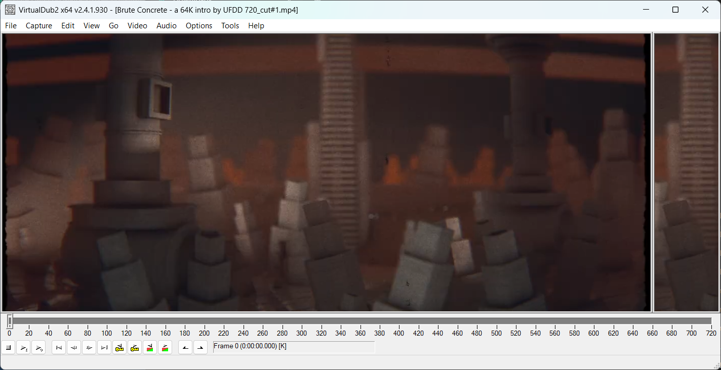 Stream cut: ?C:\Users\Findu\Downloads\Brute Concrete - a 64K intro by UFDD 720.mp4?174850?-hide_banner -loglevel error -stats -y -ss:0:0 48 -i "C:\Users\Findu\Downloads\Brute Concrete - a 64K intro by UFDD 720.mp4" -frames:v 1440 -map 0 -map_metadata 0 -movflags use_metadata_tags -c copy -dn -metadata:g encoding_tool="clever FFmpeg-GUI" ?C:\Users\Findu\Downloads\Brute Concrete - a 64K intro by UFDD 720_cut#6.mp4?0?40 - 66