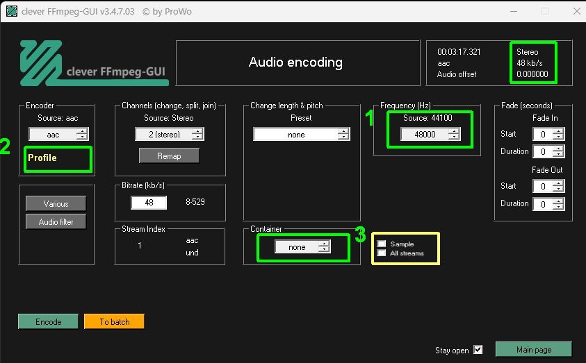 No, I'll leave it at 48kHz, but you can change it as you like.Another request is related to the the Sample Rate [Frequency]: