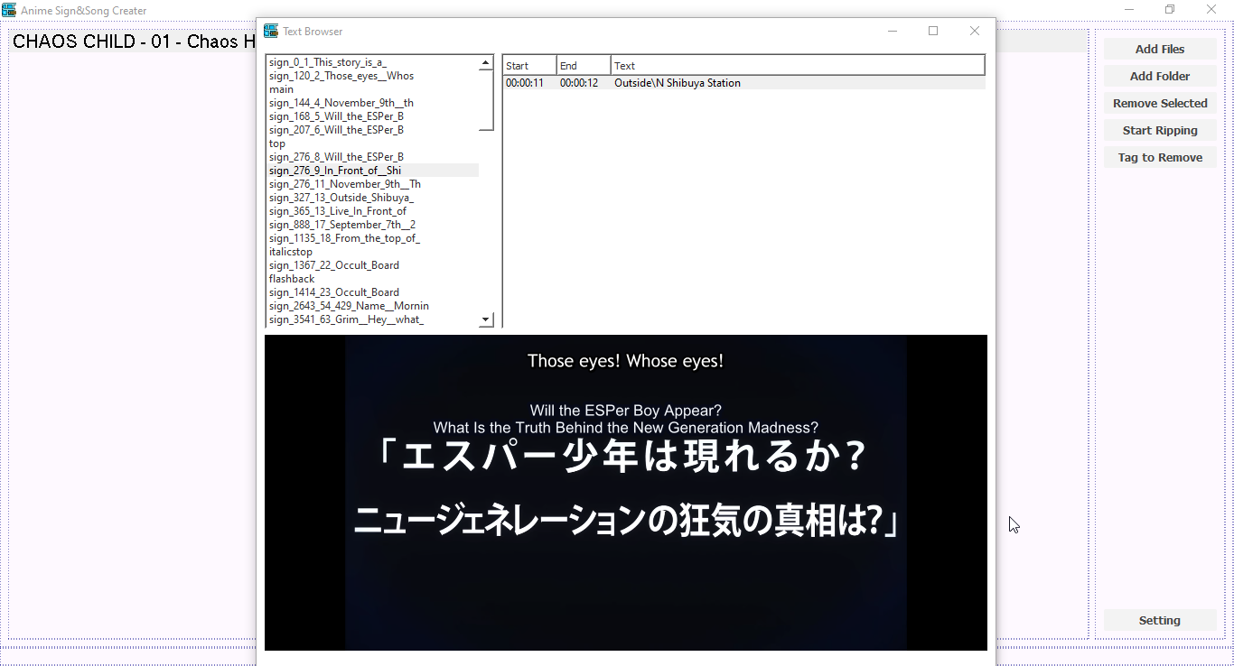 Software design to Create Sign&Songs subtitle from ASS(SubStation Alpha) for Anime from Main Subtitle