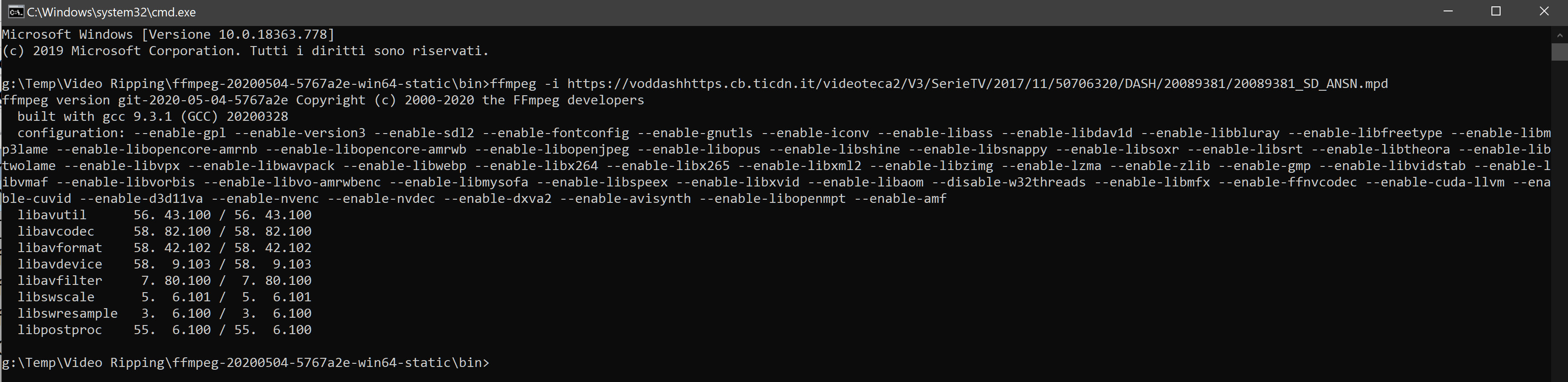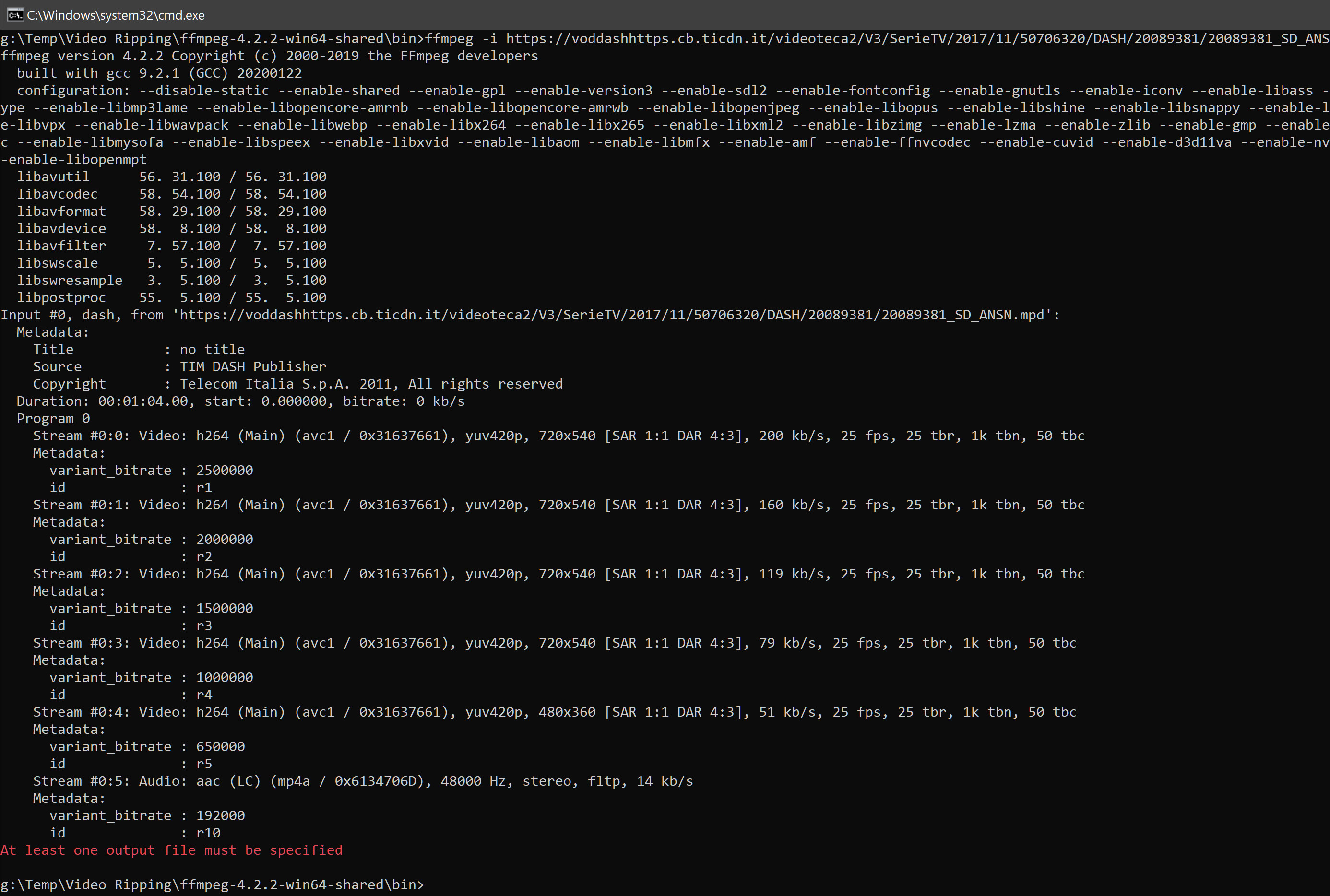 here some pics. ffmpeg 4.2.2 regognize stream and can rip it. Instead last versione dont find nothing stream