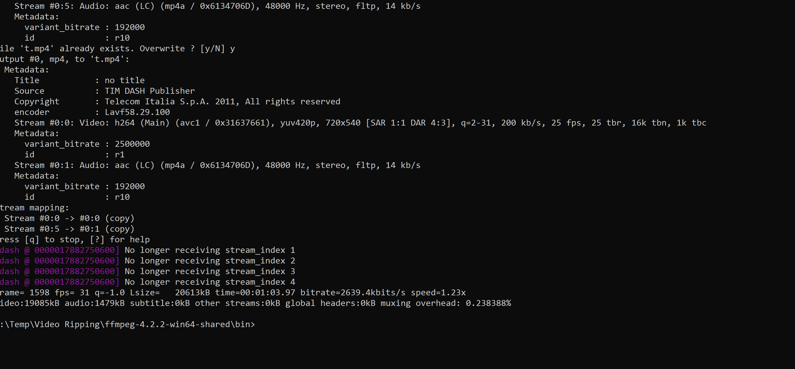 But the strange is that....ffmpeg that can rip 1 minutes of this stream, now with the new update dont work on the same mpd.....