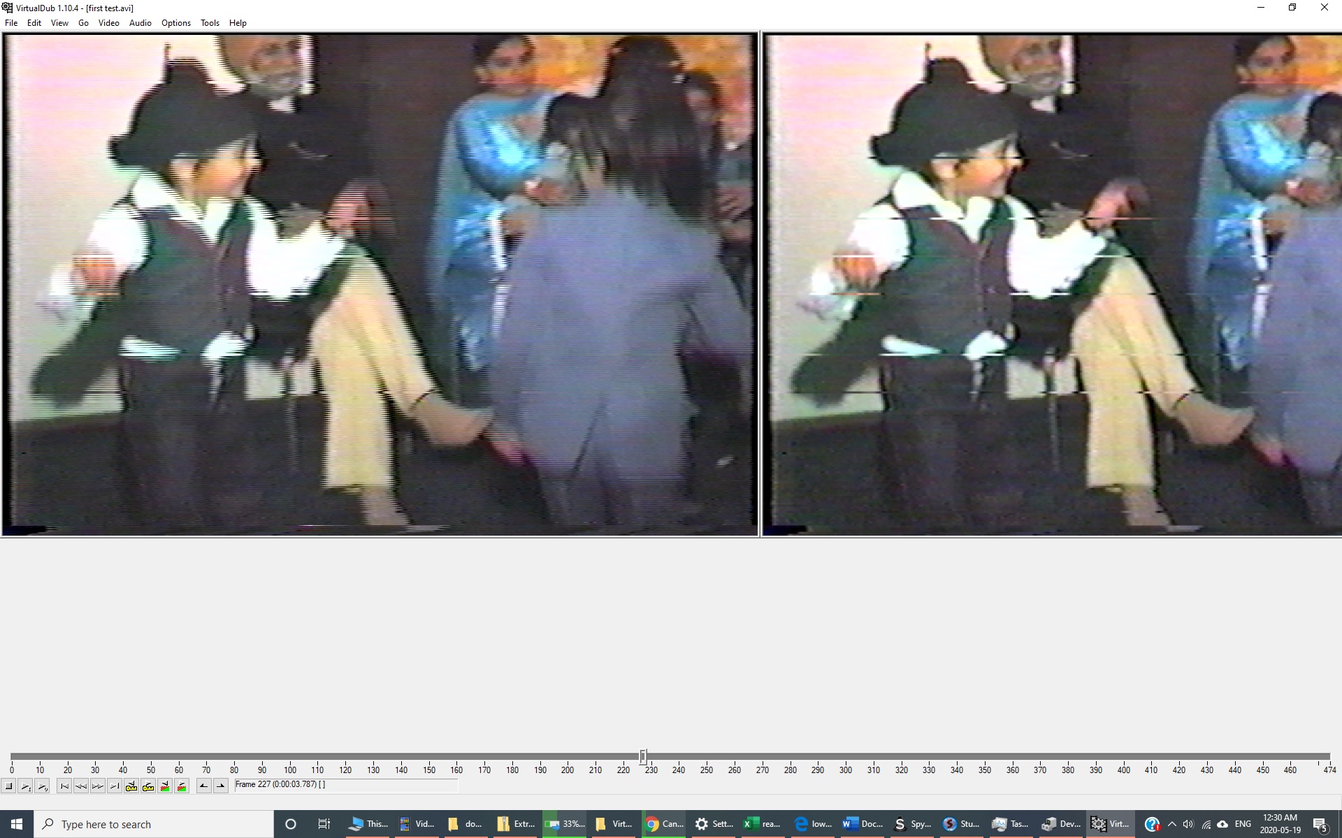 I bought a $25 VHS conversion device from amazon ( some ezcapture device). I hooked it up to my computer using brand new A/V cables (yellow, white, red composite). I'm using VIRTUALDUB to capture and save the files. The problem I'm having is these horizontal lines that appear randomly in the video (PLEASE SEE PICTURE). After the deinterlacing filter is applied, the lines remain. The problem does NOT occur when connecting my VCR to my plasma TV using the composite cables. As you can see in the enlarged picture bellow, I've added a deinterlacing filter which gets rid of the actual deiterlacing issues, but these lines still appear throughout the entire 50 minute video.