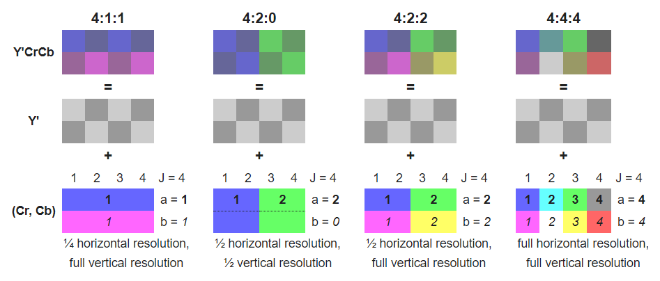 I will try that when I get back home. In the meantime, you have (as usual) clarified a few things for me; however, you have also caused me to question my assumptions. From https://en.wikipedia.org/wiki/Chroma_subsampling: