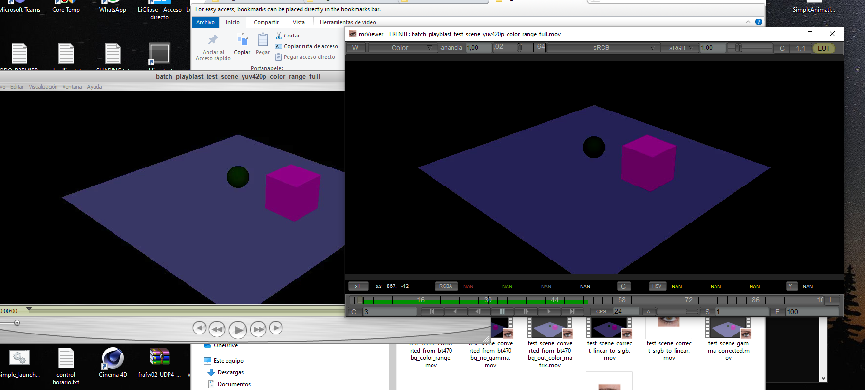 The other one: (2) "batch_playblast_test_scene_yuv420p.mov" is the one that im trying to figure out how to convert so it looks exactly like (1).
