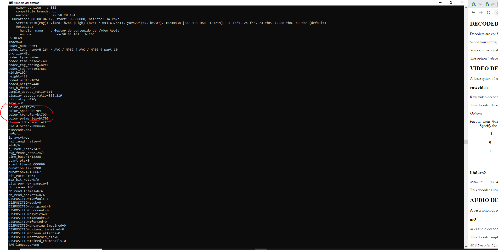 being the "in_range=limitedut_range=full" the filter that apparently converts the color range from TV to PC. But it does nothing. The result is the same.