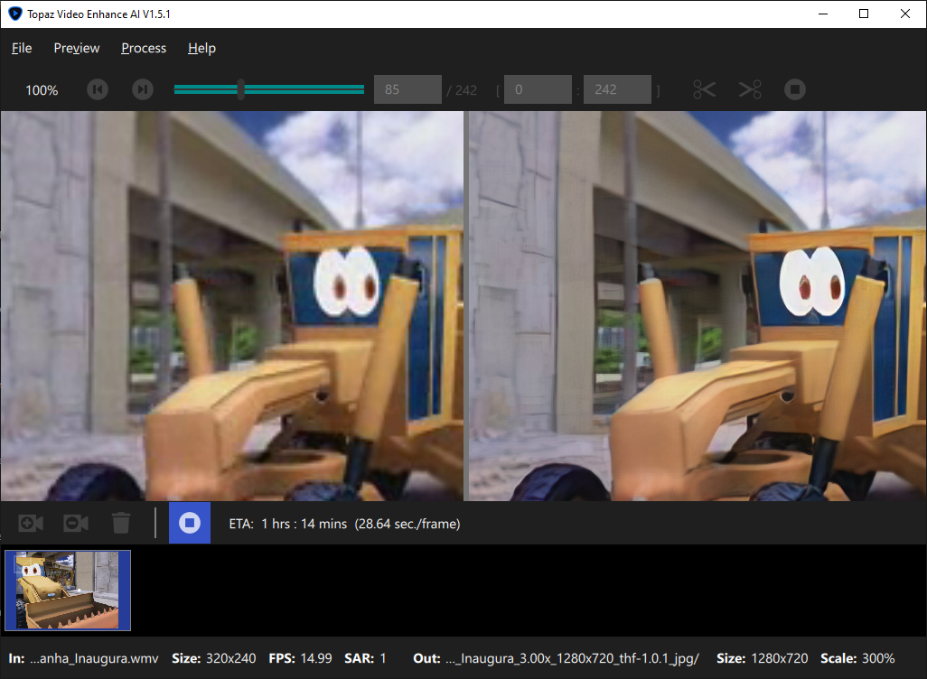 I hope the final output video is also great. I'll post the result here tomorrow. So far Topaz is very promising for my needs.