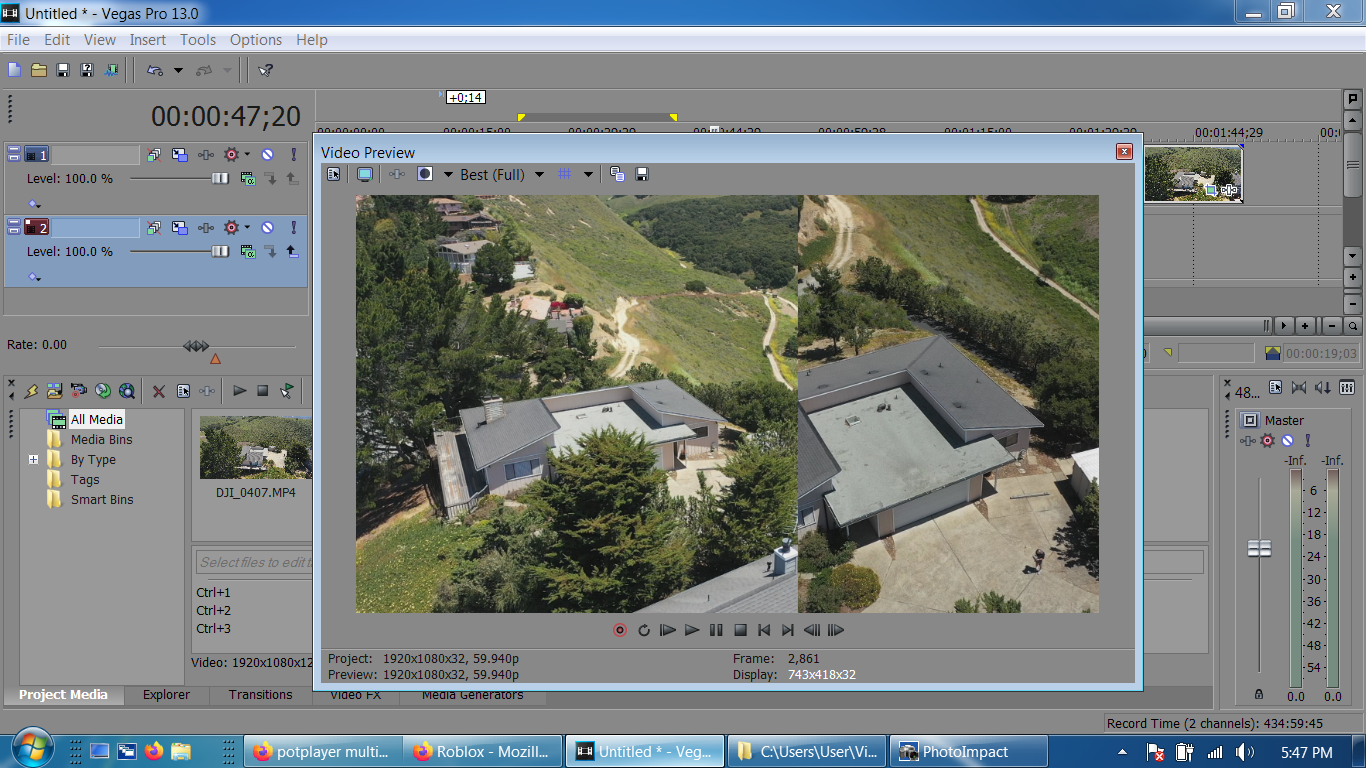 P.S. Here are two similar videos, set up to play side-by-side in Vegas: