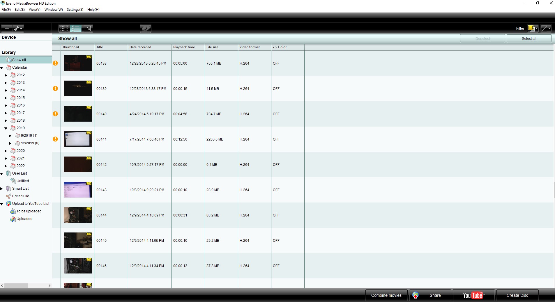 Yes<<Everio Mediabrowser creates a database at the first startup, where the imported videos are added and sorted.