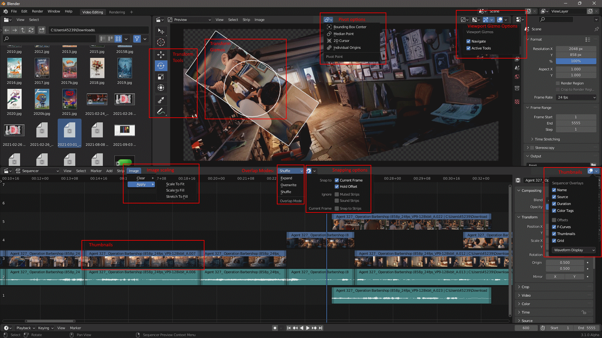(Move, Rotate, Scale, Crop, Track Tranform, Mouse Teack etc. in Toolbar and in VSE Preview)