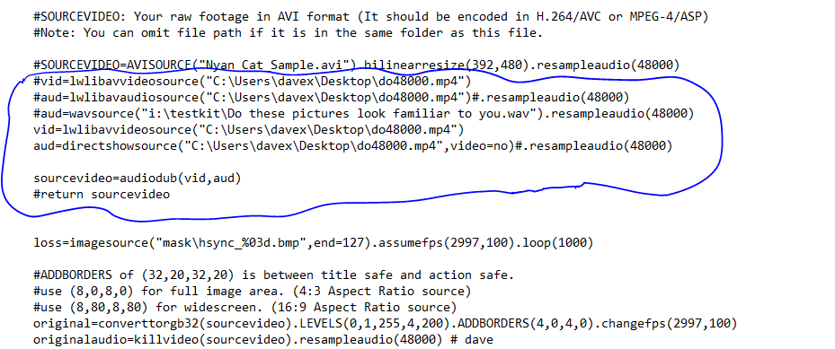 #Use this to extract the original audio [VirtualDub: File -> Save WAV...]