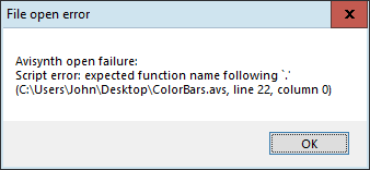 >> I'm getting this msg in the video player, when there is a syntax error in the avs script.Originally Posted by butterw