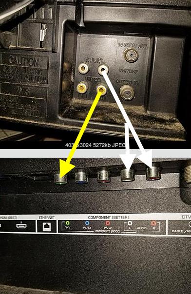 I have a Vizio (about 4 years old) and I'm trying to hook up a dinosaur of a VCR. Back of device pictures attached.