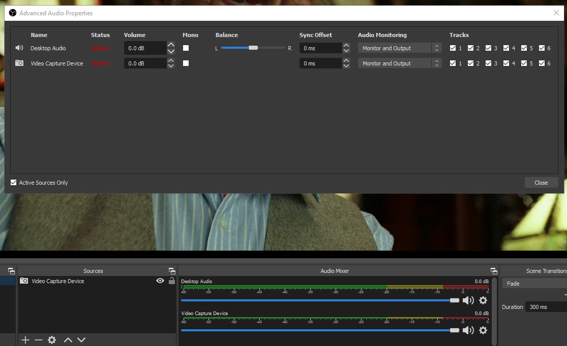 Close Hauppauge Capture, launch OBS, select Device Capture, select the Hauppauge PVR2, I then I just see the video window (uncluttered), but no sound.