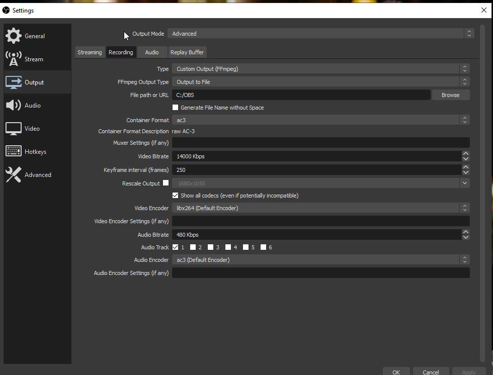 Now is there a option in OBS to record the Stereo AAC to AC3 format with an AC3 encoder, etc.?