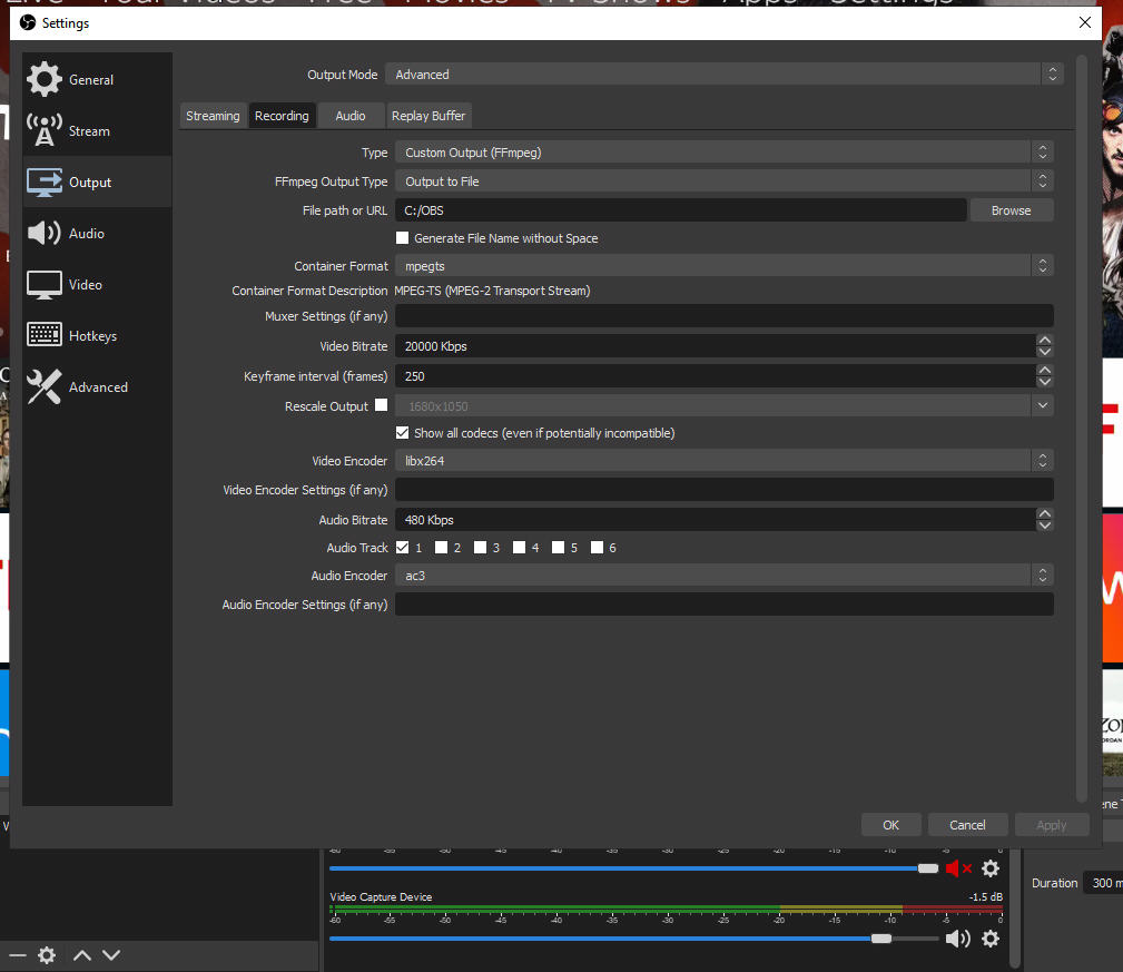 Hopefully someone will know what be wrong to prevent FF in the OBS captured video?