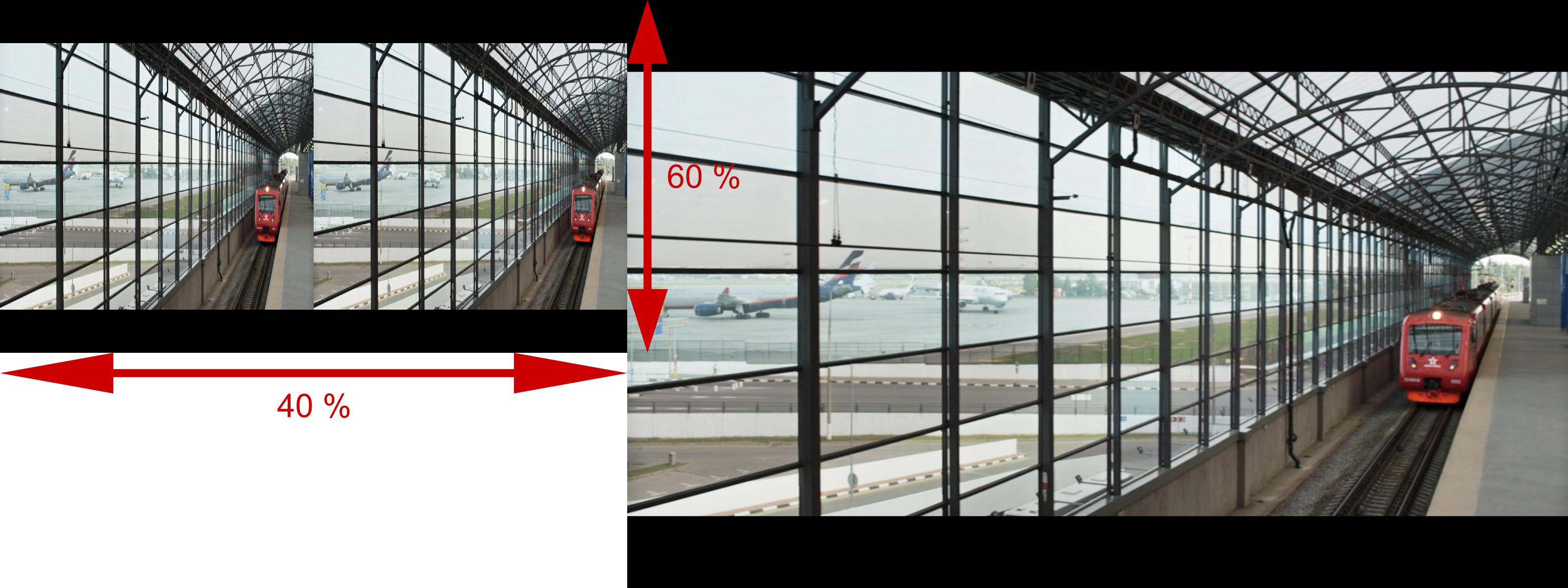 Quality is not a problem, so bilinear is perfectly fine. Can the code you provided above be modified to make [L|R|] 40 % in width and 60 % in height of the whole [L|R|L]?