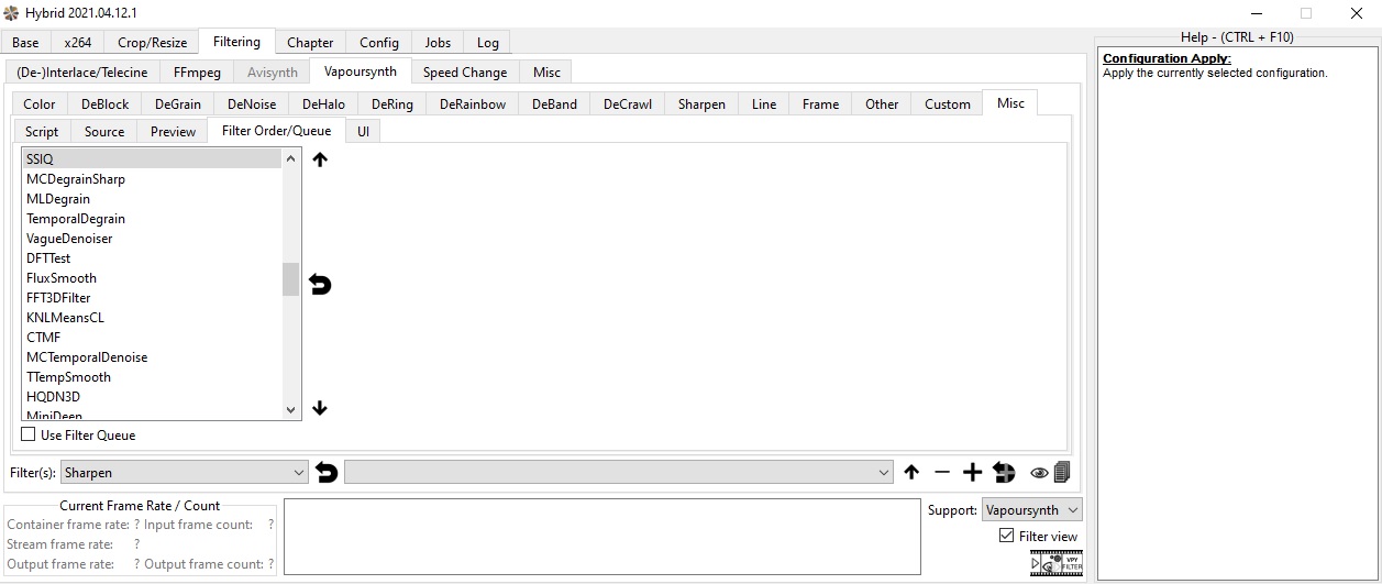 • moved the sharpenig Filter under the Resize filter under 'Filtering->Vapoursynth->Misc->Filter Order/Queue'