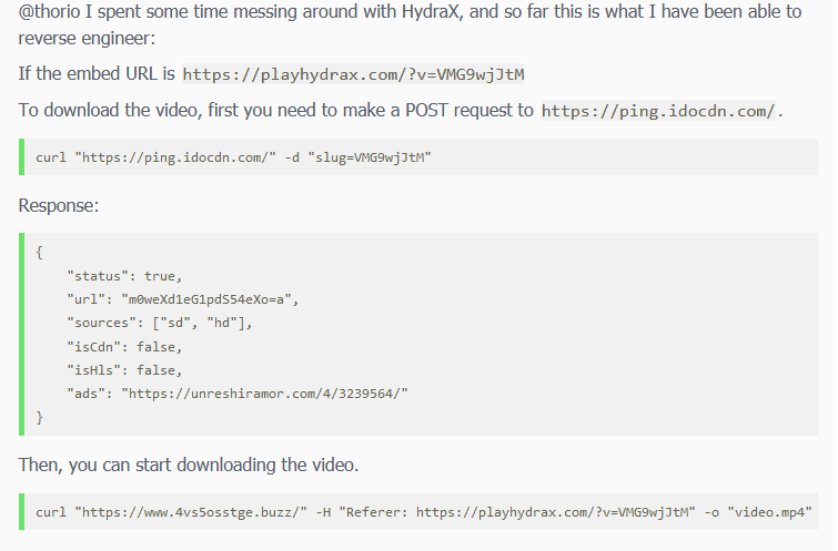 Rather try downloading from hydrax.net method should be same, i read somewhere that playhydrax uses websockets and keeps updating their site.