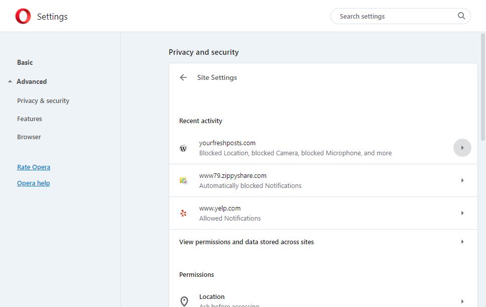I turned OFF every access feature I could find in Opera Settings for Yourfreshposts -- see the next attached pic -- which seems to be noticeably helping, but so far I wasn't able to remove the listing of it entirely.