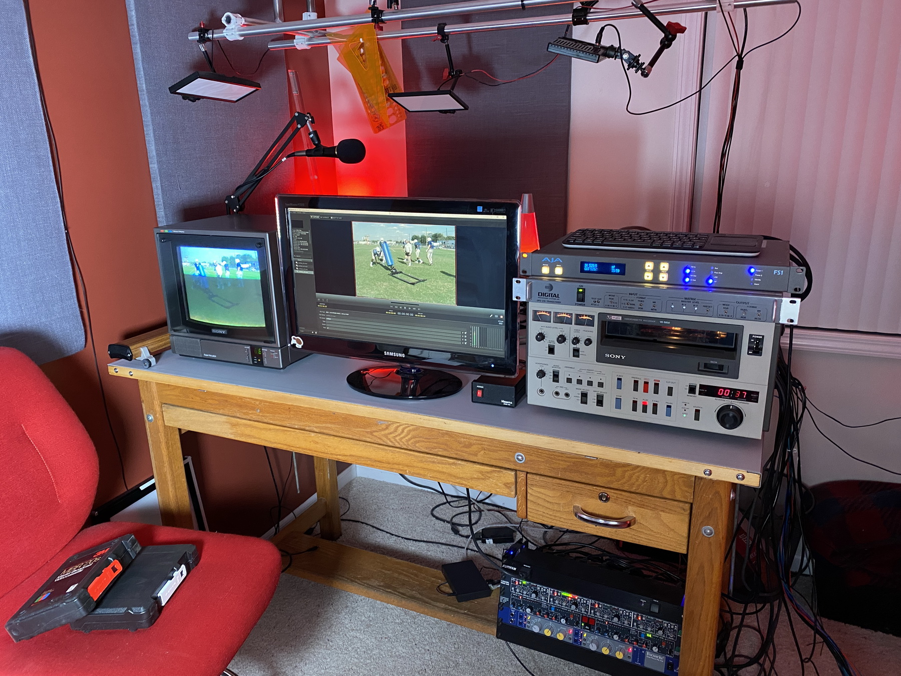 My dad bought a full Sony U-Matic editing rig in the early 80s to put together footage for his (US)football training equipment company. A few years ago, he asked if I wanted to try archiving all the tapes and I said yes, so he dropped off the whole setup. There's probably somewhere around 200 tapes in boxes in storage. Lots of raw footage of college and pro teams training, as well as masters and in-progress edits of training tapes and trade show demo reels.