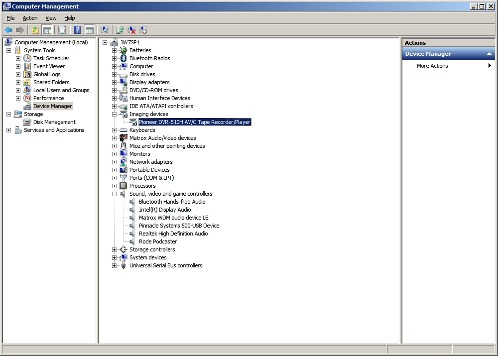 Then it spawned a new device for the Pioneer DVR-510 under the Imaging branch of the device driver tree: