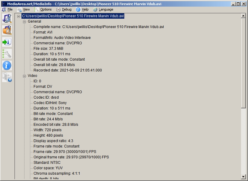 The video file identified by MediaInfo suggests the Sony DV Codec was used: